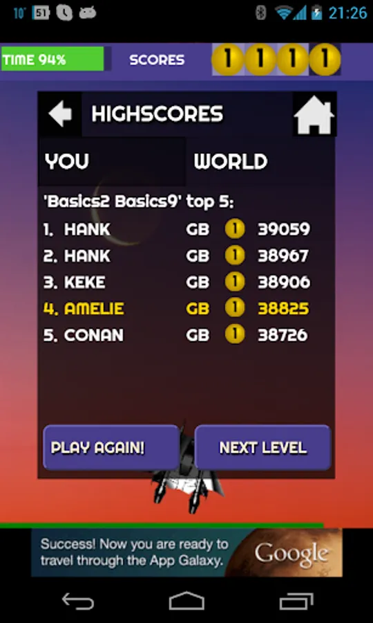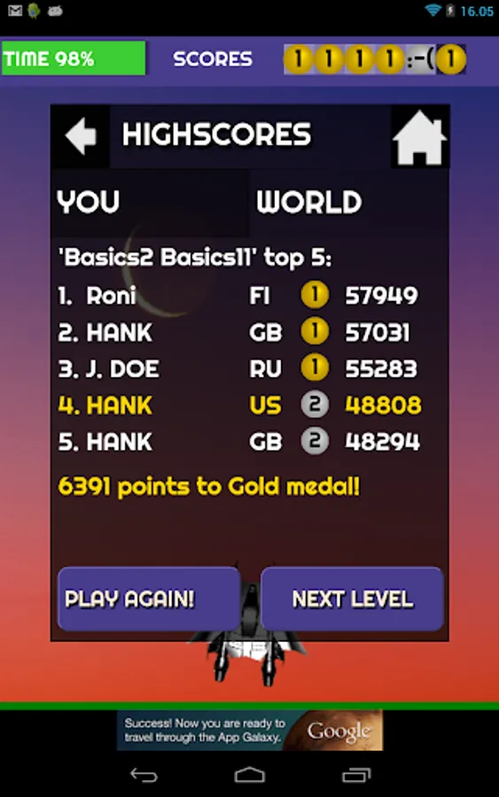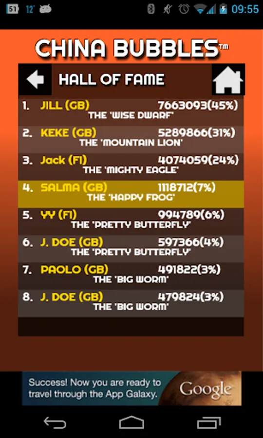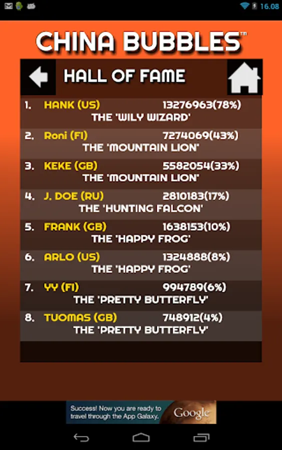 * compete against friends and other players via the global high-score table and Hall Of Fame