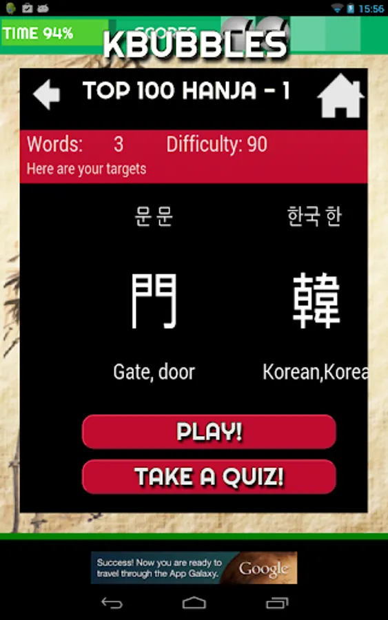 hanja, hangeul, korean, learn, memorize, characters, game,taekwondo