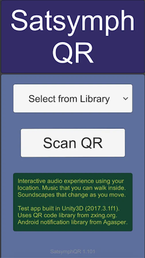SatsymphQR is a utility app for curated public events showcasing interactive immersive locational augmented aurality.