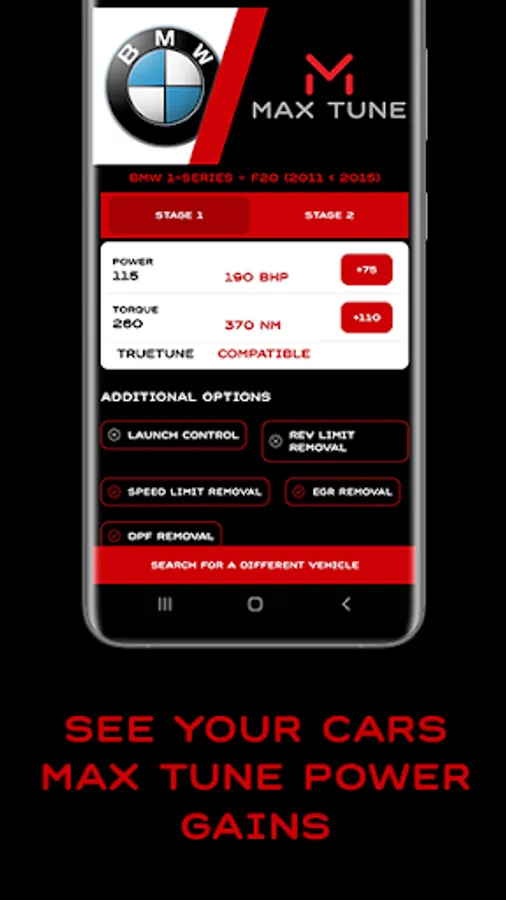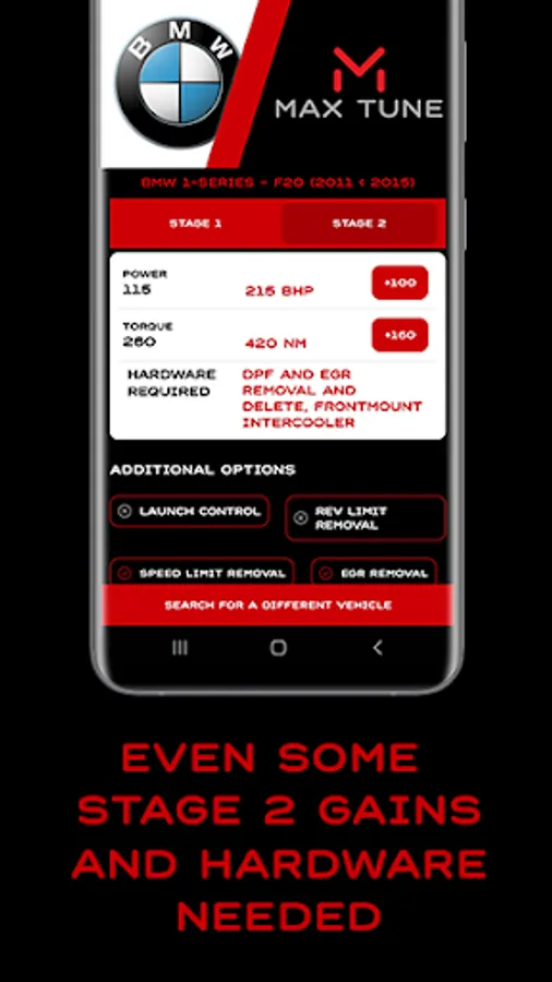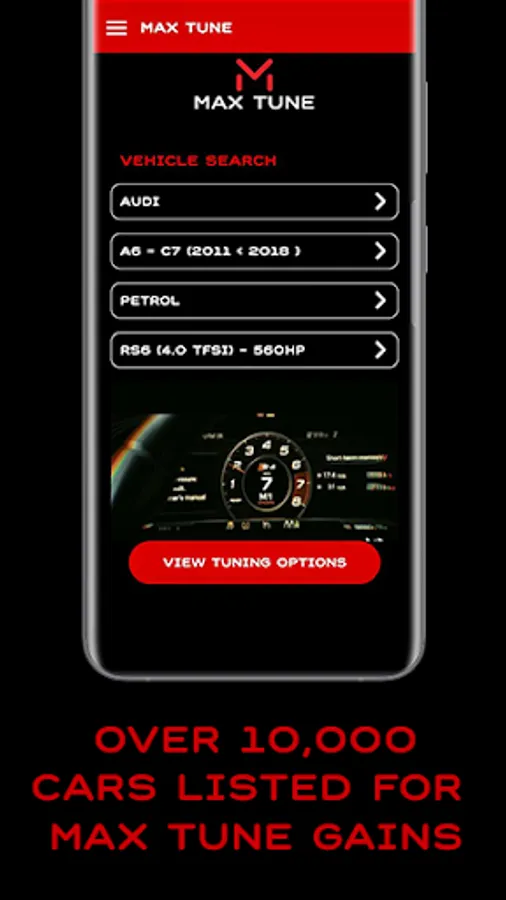 Max Tune’s Gains app has been developed so you can have Max Tune on demand. Having our Gains app in your pocket gives you the ability to see exactly what over 10000 cars BHP and NM could increase by, easily and quickly. We even give you Stage 2 figures and information on the hardware required to get you there! You can contact us directly from the app, making it even easier to get in touch. There will also be a section on the latest offers we have available, and you will get information on those first. There will be links to our social media content, and many more updates coming soon! We have developed this app and figures from continuous testing on our 4WD dyno, so we know all our figures are achievable. In most cases we end up achieving a bit more! The app will be constantly updated as new makes and models are released, so you will have the latest information available in real time.
