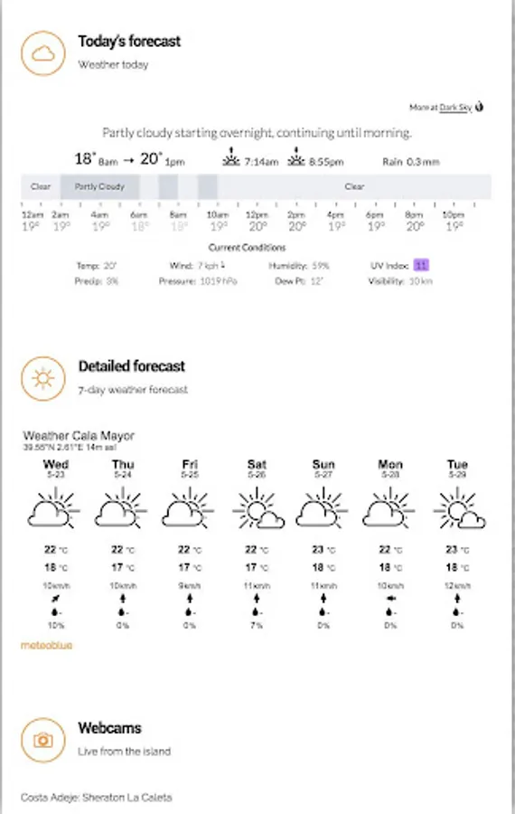 7-day and 24 hour local Mallorca (Majorca) weather forecasts: Plan your week with the 7-day weather forecasts or check the detailed forecast for the next 24 hours, organised into 2-hour chunks.