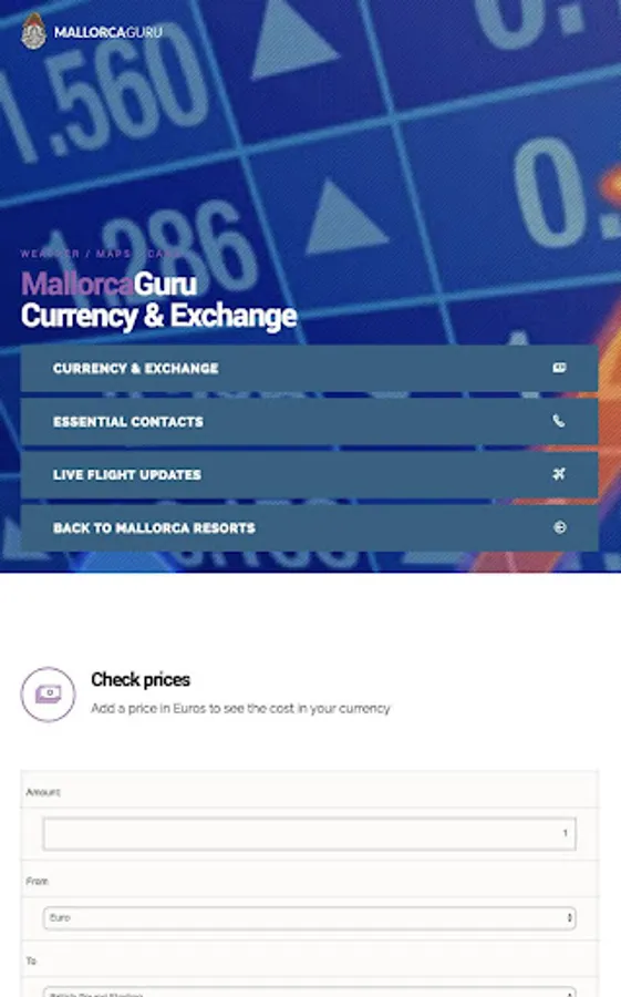 Currency and Exchange: Input a price in Euros and have it instantly converted into your currency. Includes current exchange rates.
