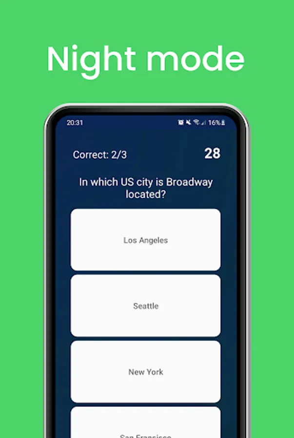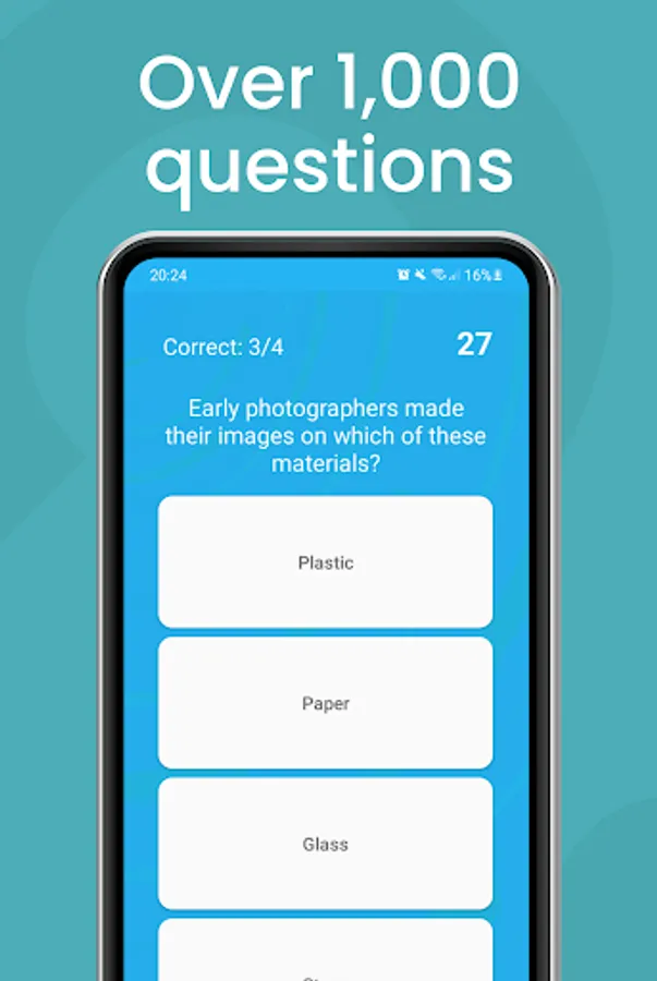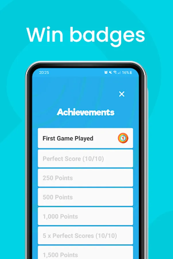 - Win points and unlock achievements by scoring over 5 out of 10 in each general knowledge quiz.
