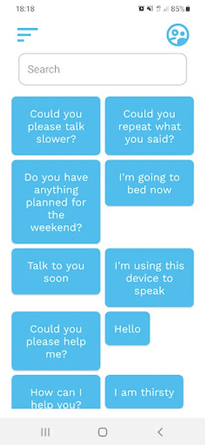 AAC speech assistant that speaks any phrase for you. Sam learns your most-used phrases so that you always have your favorites to hand! The text-to-speech engine uses the latest voices and you can choose from a list. To really personalize your experience, you can even choose your own color scheme.