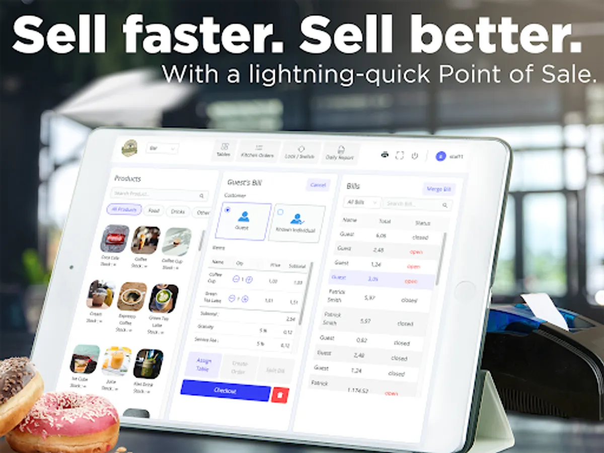 Setting up and managing staff users is a breeze, and it works with all Android tablets and bill printers.