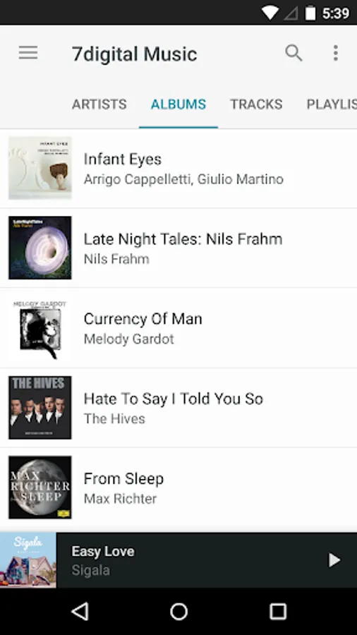 • Integrated music player - Play non-7digital music that is already stored on your device