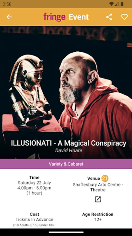 - Decide what to watch by searching by performance, venue, genre, age restriction or entry type.