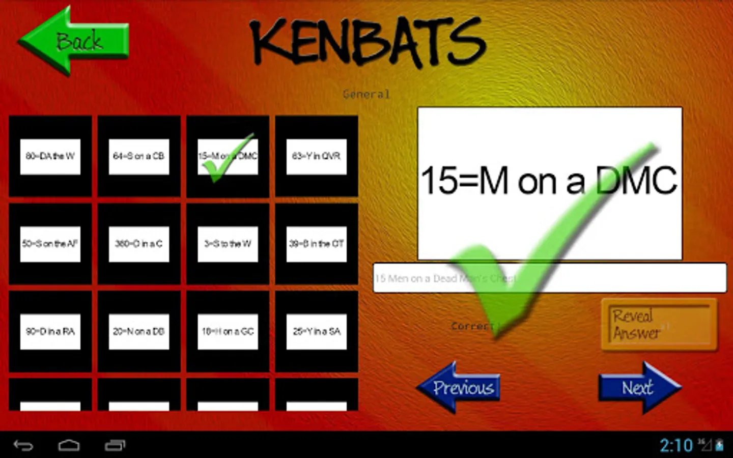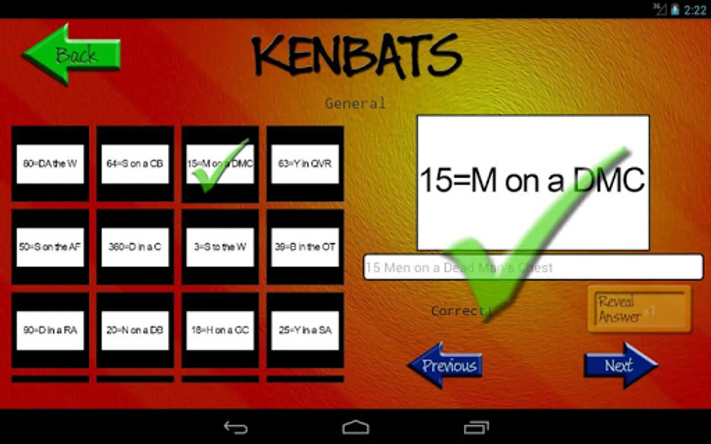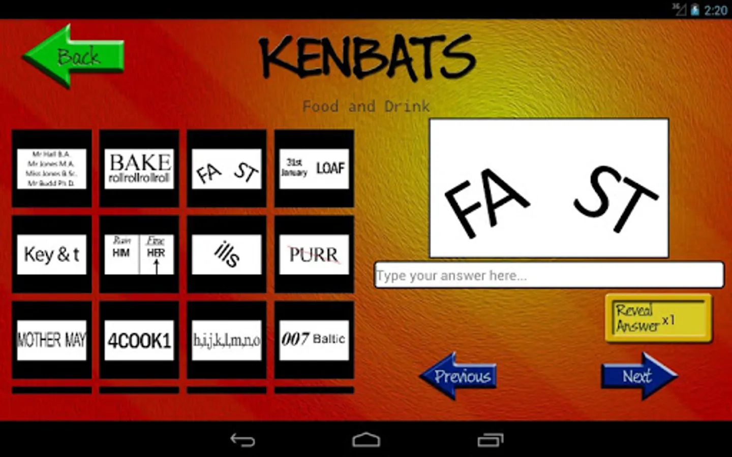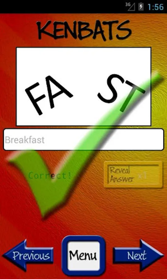 Kenbats features hundreds of word-based puzzle images, all categorised and ready to twist your mind. Can you figure them all out? Covering categories such as towns and cities, football, as well as hundreds of general knowledge subjects, there's something for everyone. In addition there are dozens of DITLOID (alpha-numeric) puzzles to drive you even crazier and keep you busy for all 7 = D of the W, 365 = D in a Y.
