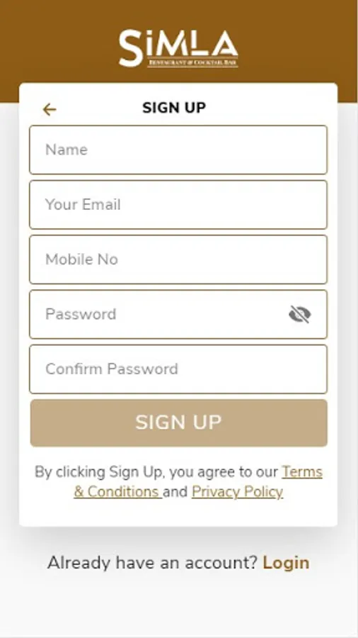 You need to simply download the Simla restaurant and cocktail Bar app & install it on your mobile or other devices and then create an account with an email id and password. On opening, you will be directed to the home page where you can either order online or book your table by clicking on the respective links. There are different categories like menu, booking, and gallery, contact and offers section on our Simla restaurant and cocktail Bar app.
