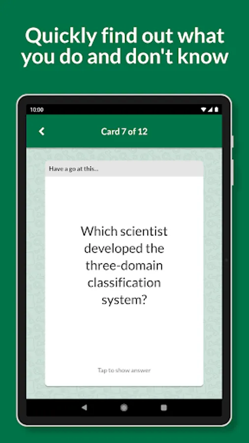 • Just answer the flashcards and the app will automatically tell you when to review them for effective revision