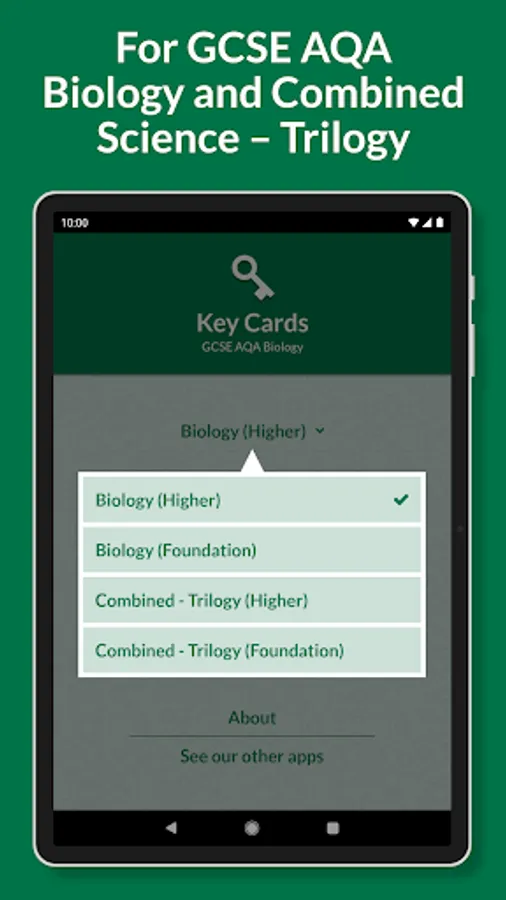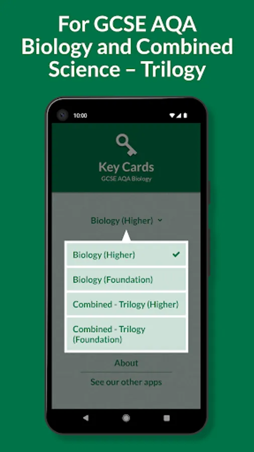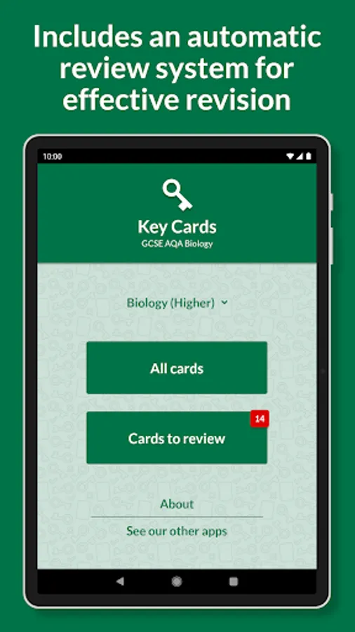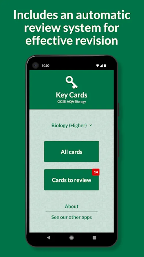 Key Cards GCSE AQA Biology is completely free. When you download it you’ll get the fully-featured app and all of the content. Nothing is hidden behind in-app purchases, subscriptions or adverts.