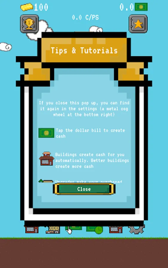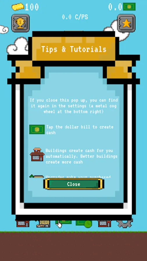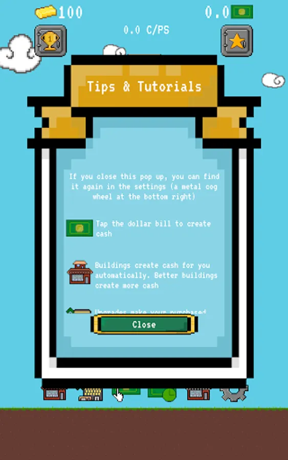 - Once you have enough cash, buy more buildings and upgrades to print dollars faster than ever before!