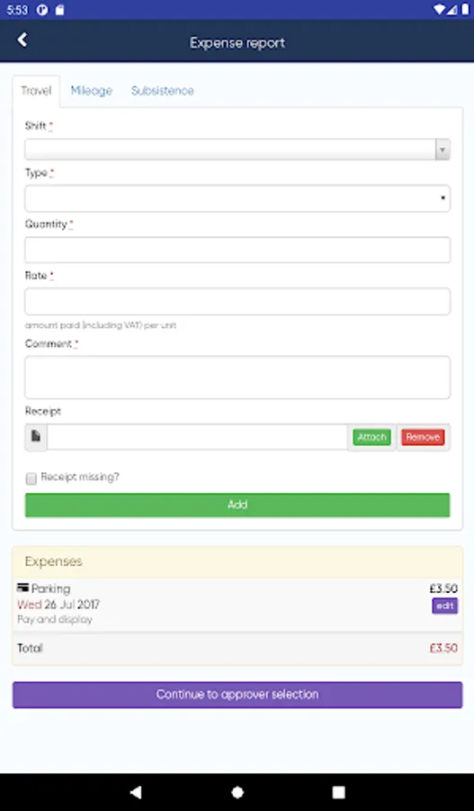 * Upload expense receipts straight from your phone
