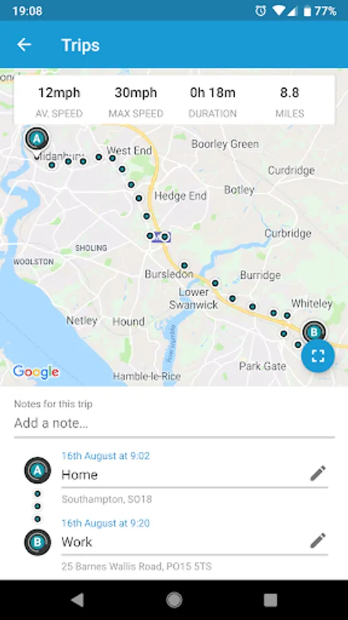 For customers with our windscreen Tag device, the app will allow you to record your driving whenever you're in your car.