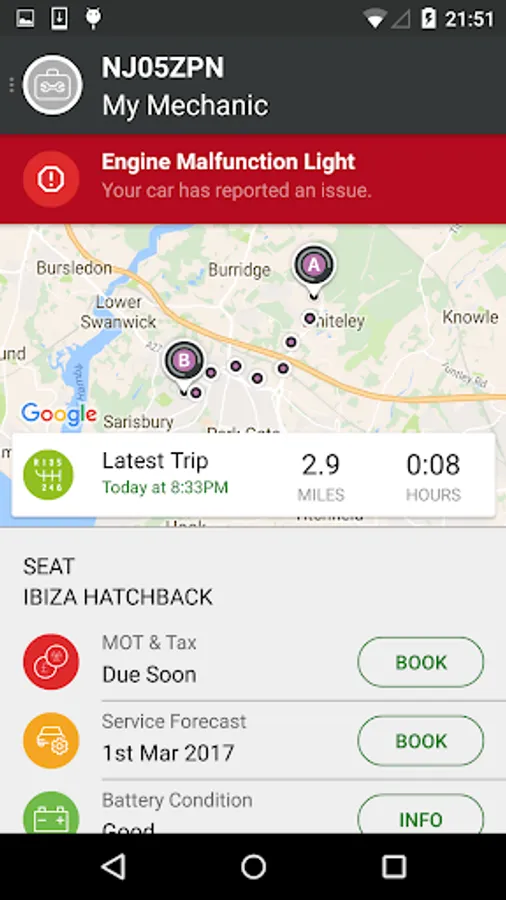 It has smart features designed to make your life easier, such as alerting you when your car has a fault, keeping track of your business miles each month and reminding you of your MOT & Tax renewal dates.