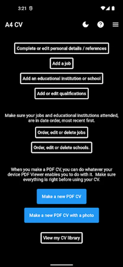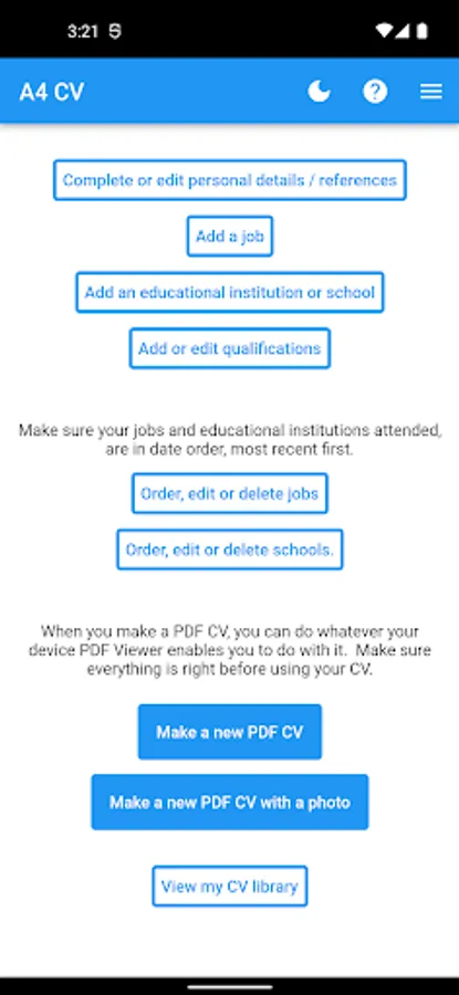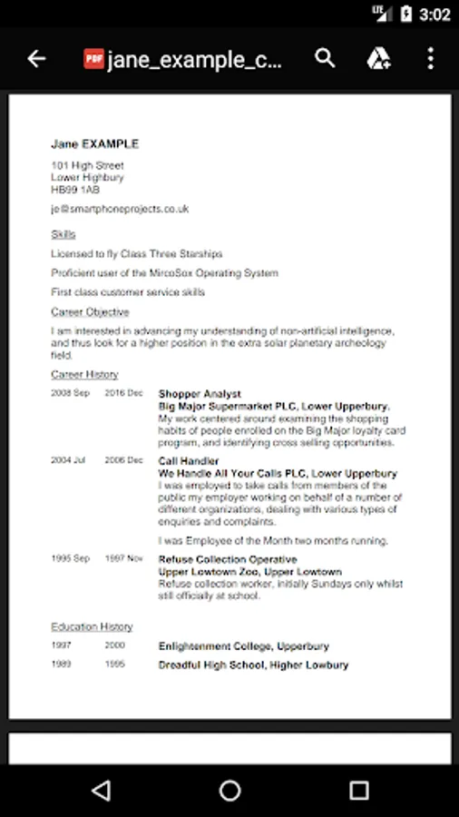 A4 CV enables the production of an A4 CV document in the widely used PDF format, viewable and more using a PDF viewer, likely bundled with a user’s device operating system.
