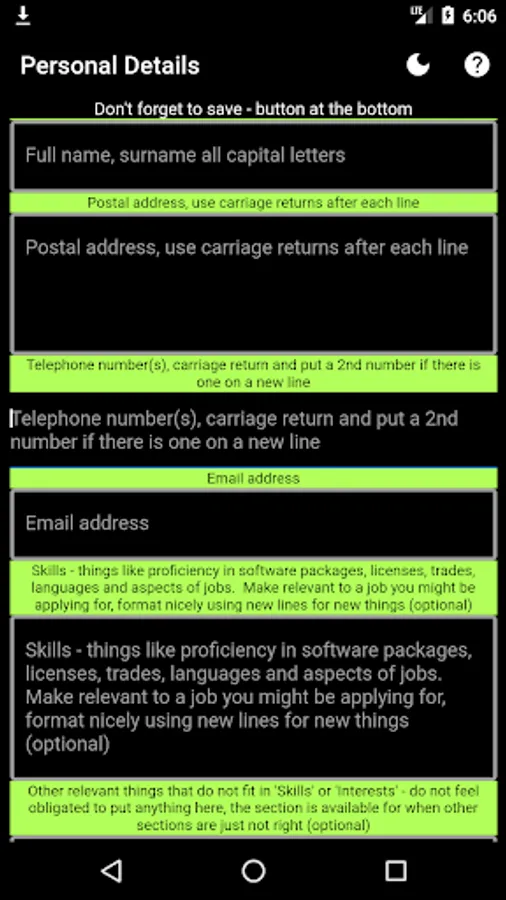 The app builds a CV document using what amount to blocks of text. Some user adjustment of CV data might be needed to reduce empty space at the end of a page, between pages.