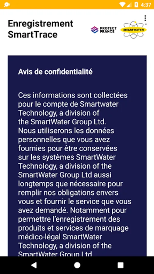 However, this identification process is only possible if the legal code marking liquidity of your SmartTrace kit is correctly registered in our secure database, along with your address and contact details.