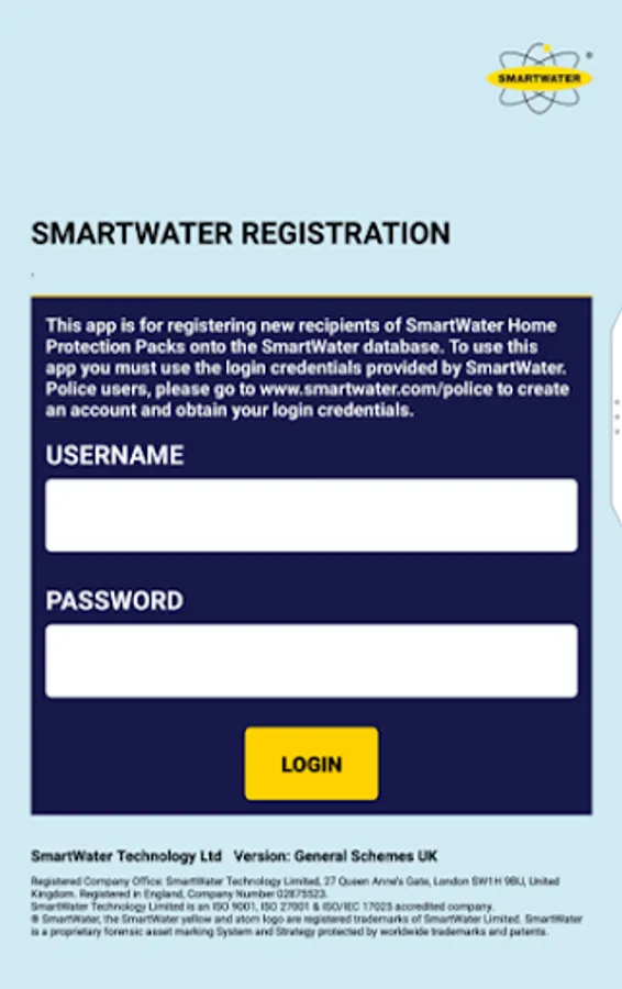 Please note that if you have not been provided with login credentials already, you will need to create these by visiting the SmartWater Police Hub (www.smartwater.com/police) and registering an account.