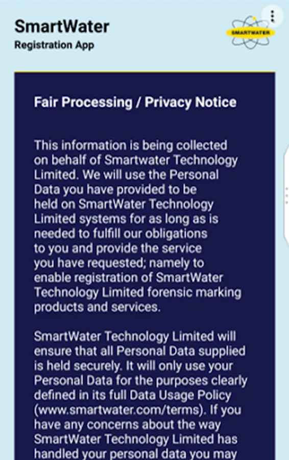 A quick and convenient solution for registering SmartWater packs as part of a police scheme.