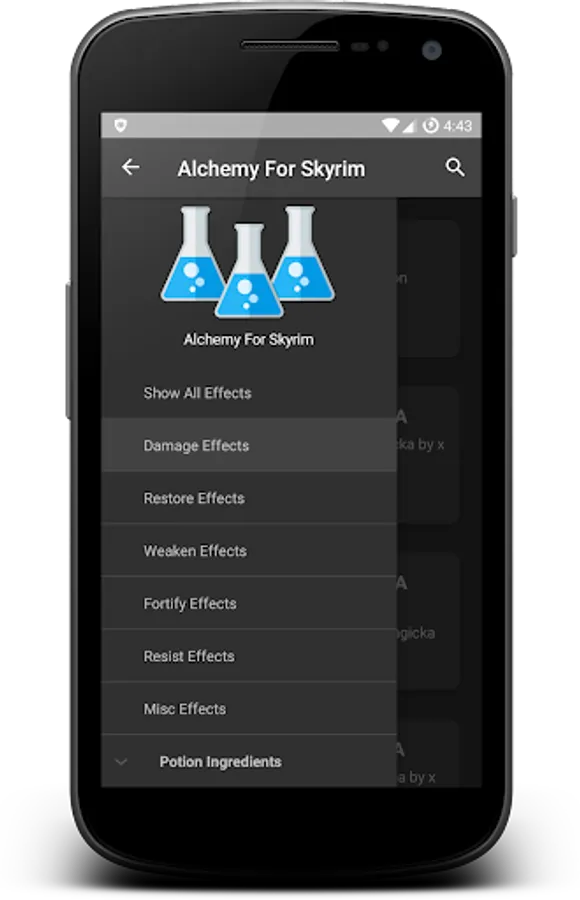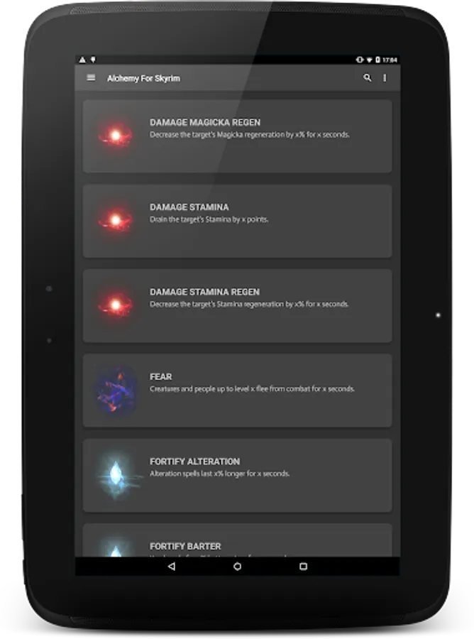 Alchemy for Skyrim shows you what ingredients you need to make any potion in the game, including the DLCs: Dawnguard, Hearthfire and Dragonborn!