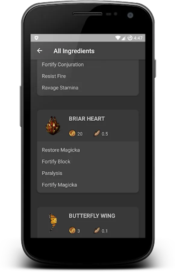 You can also view the whole list of ingredients and their magical effects and cost to buy from an NPC vendor.