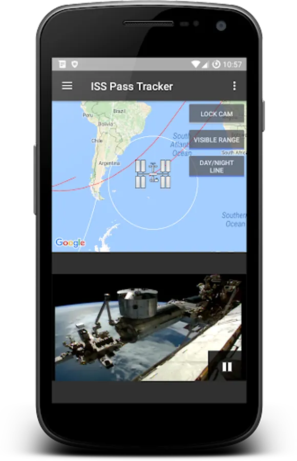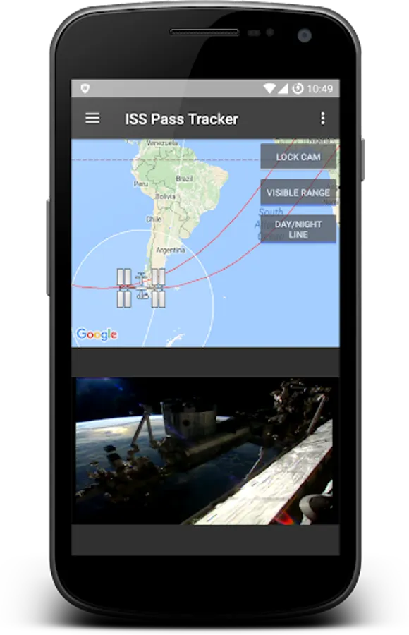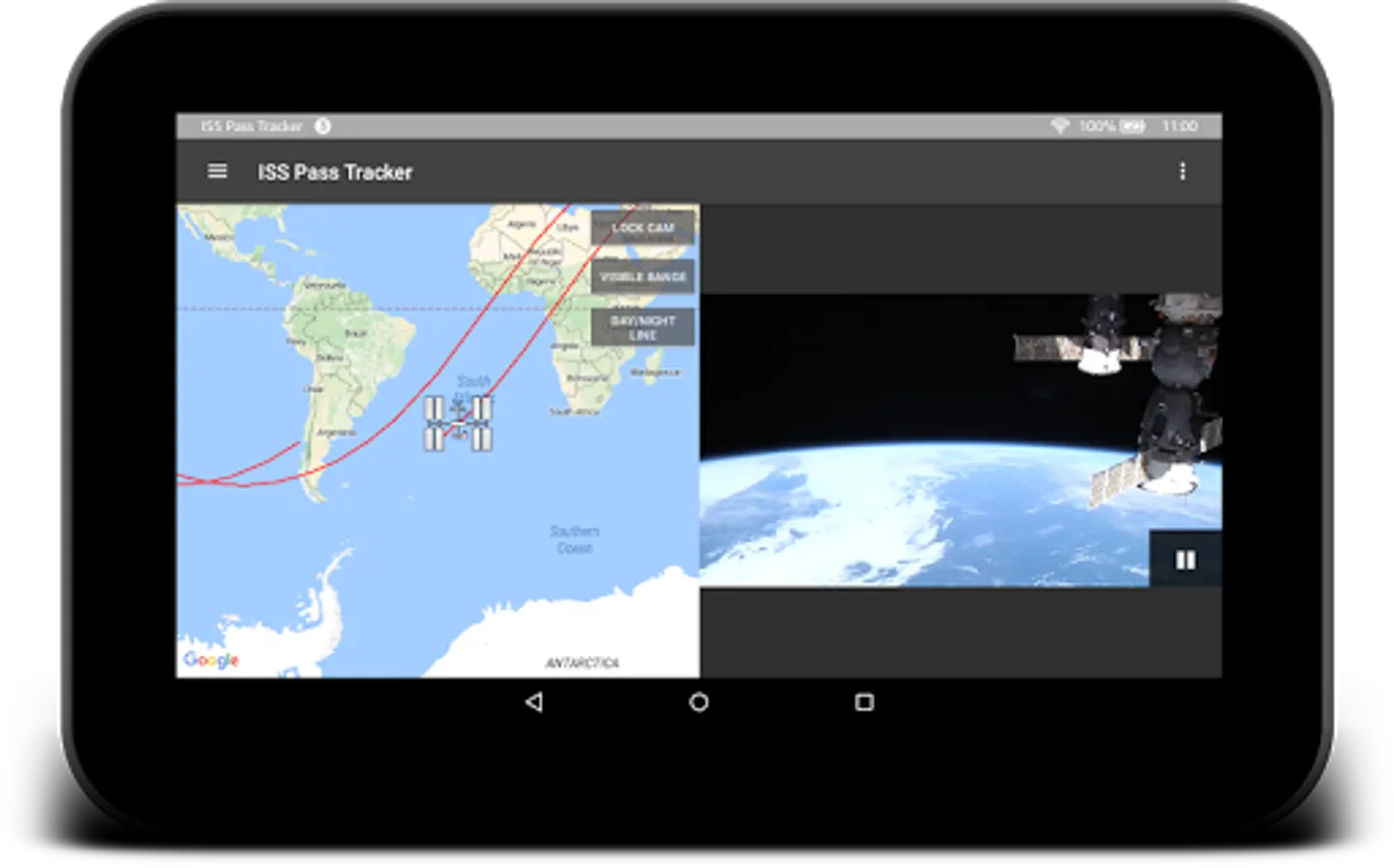 You can also choose between 2 live streams from on board the space station, and follow along as the ISS orbit's the planet.