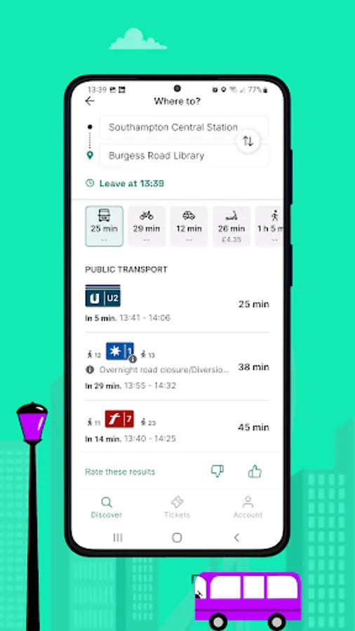 Not all advertised transport services and app features are currently available. All services and features are expected to be integrated by 2023. More ticket features coming soon.