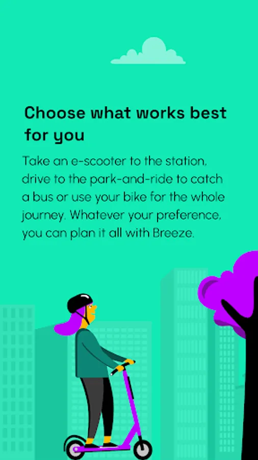 Choose what works best for you. Take an e-scooter to the station, drive to the park-and-ride to catch a bus or use your bike for the whole journey. Designed to be as accessible as possible, whatever your preferences or needs, you can plan it all with Breeze.