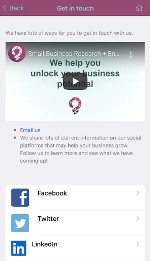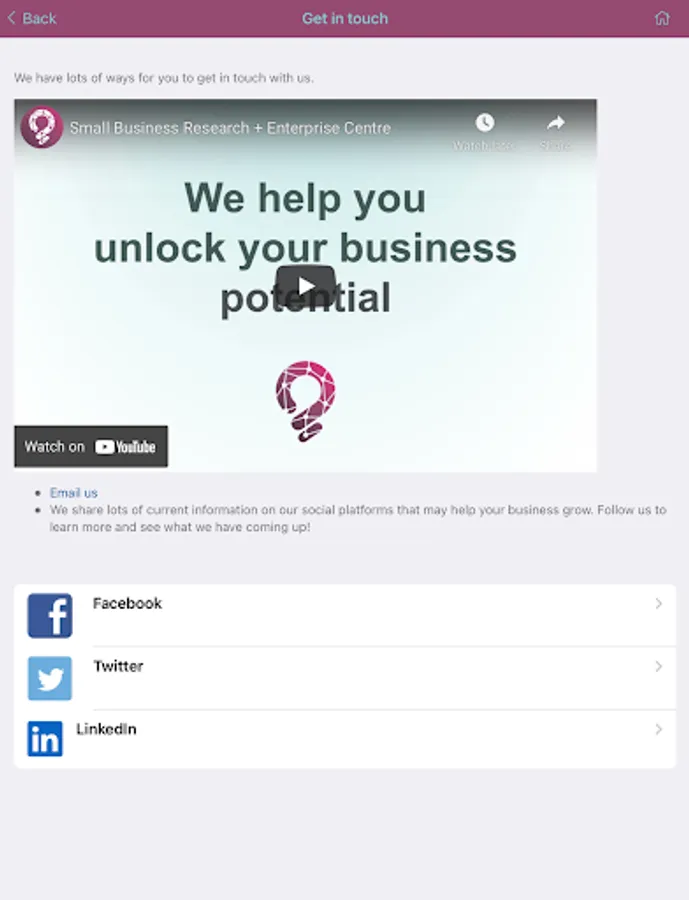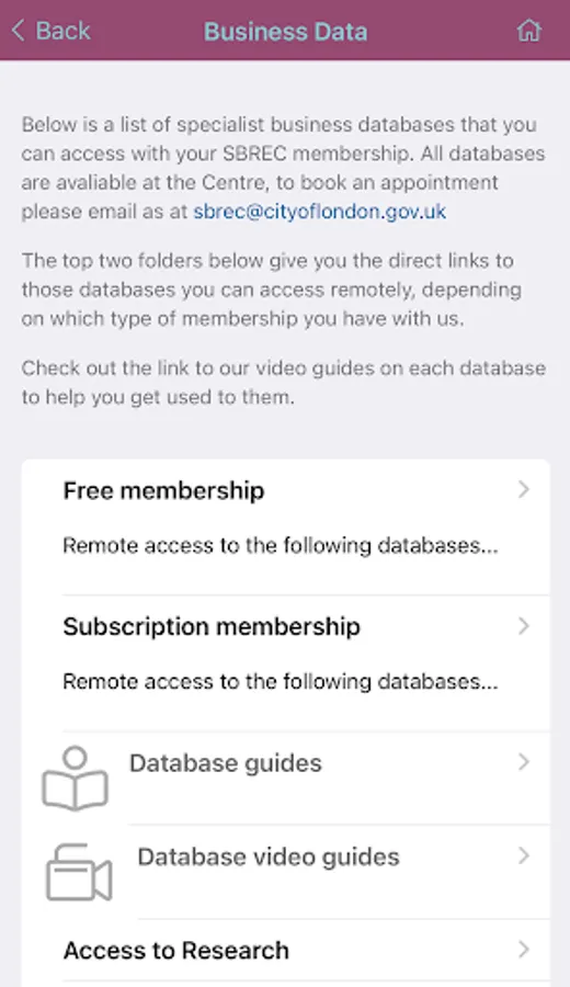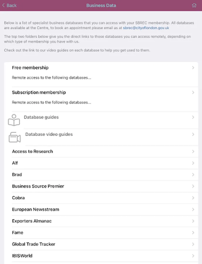 Access the Small Business Research + Enterprise Centre app from your phone. Use the specialist databases with your membership, search for business webinars and support, and book a time to do your research at the Centre.