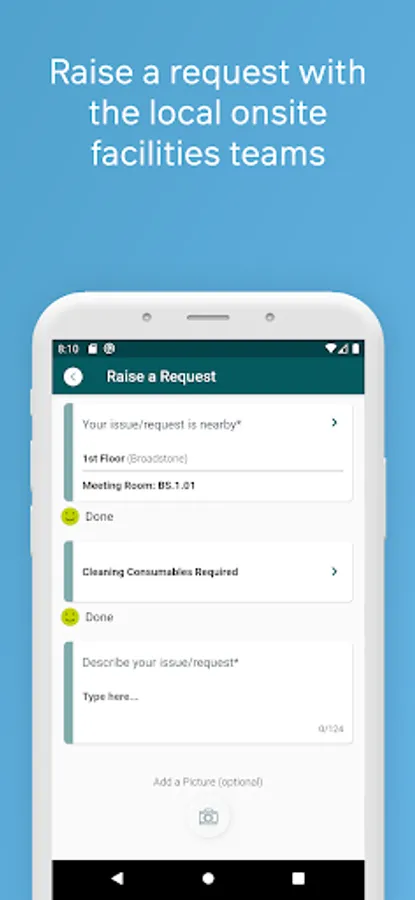 6) Raise a request to the onsite facilities team if you need help or spot an issue.