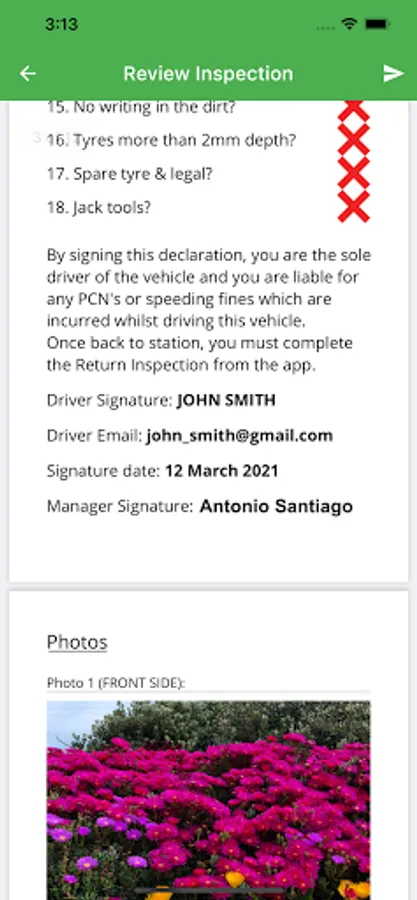 In just few steps, the user will complete a checklist with photos and this will be sent automatically to Manager and driver email address as a PDF document.