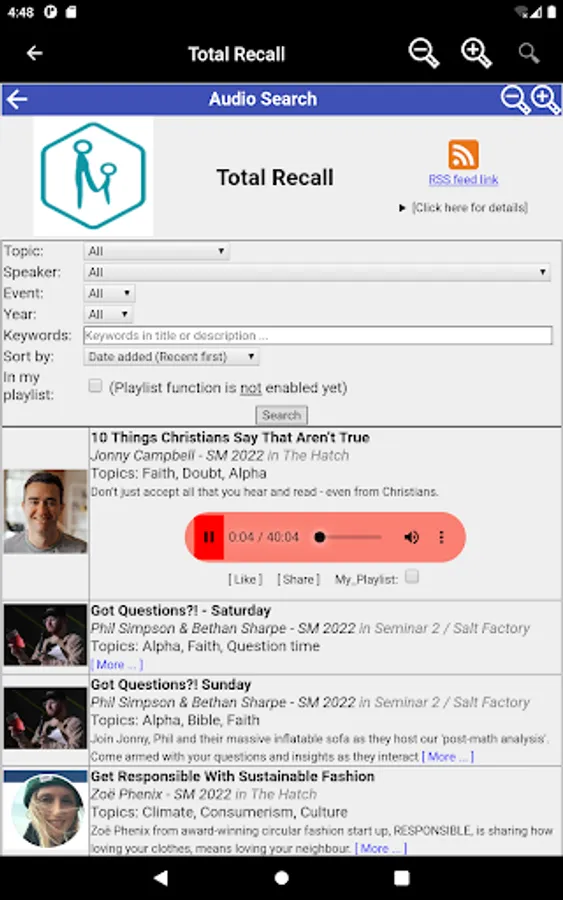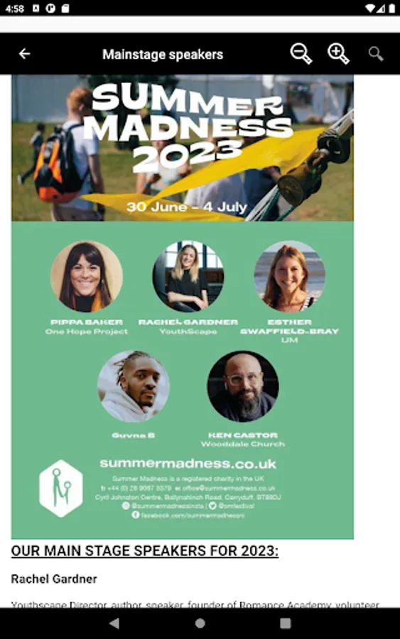 This App contains the Festival Programme and downloads daily updates during the event, for the Summer Madness Youth Festival held in Portglenone, N.Ireland each year at the end of June/start of July. The App also contains resources that teenagers and youth groups can use throughout the year, including the 'Total Recall' audio recordings from several years of Summer Madness festival, and a Youth games book, etc.