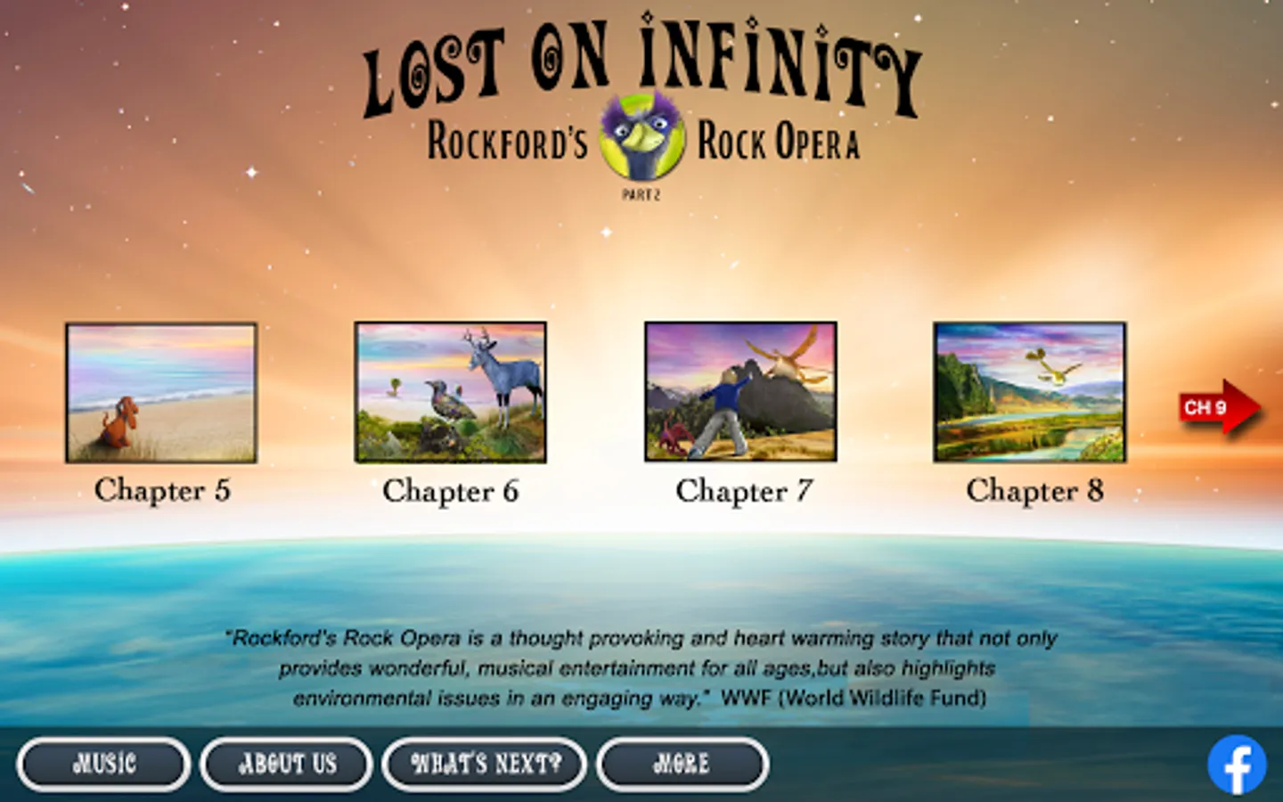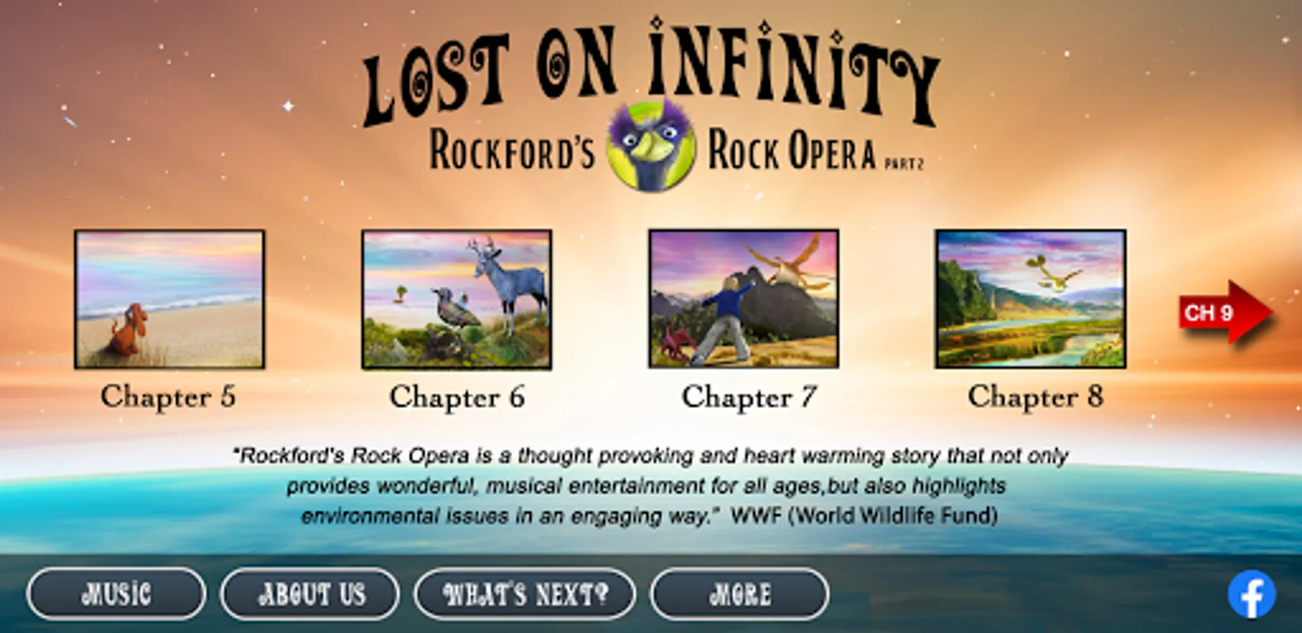 Welcome to Lost on Infinity by Rockford's Rock Opera – PART TWO – the second amazing instalment of the world’s most popular enhanced audiobook, and now the planet’s most popular kid’s audiobook App.
