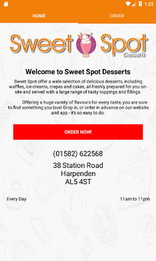 Sweet Spot offer a wide selection of delicious desserts, including waffles, ice-creams, crepes and cakes, all freshly prepared for you on-site and served with a large range of tasty toppings and fillings.