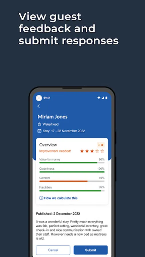 View feedback about your property directly from your guests, and respond to reviews in the app.