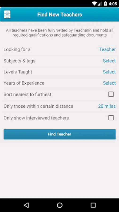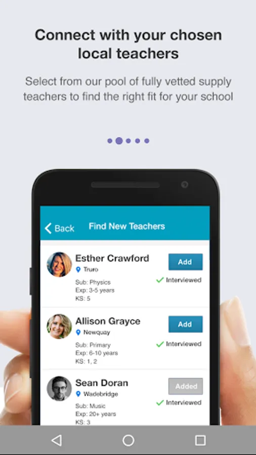 With TeacherIn, supply teachers create a free profile which is immediately vetted by the TeacherIn team. Schools can then engage the teachers in their area for work without the need to pay commissions and finders fees to agencies.