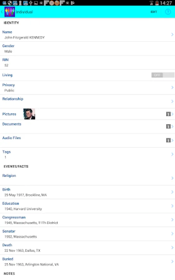Families is designed to operate in conjunction with Legacy Family Tree, the leading Windows-based genealogy software from Millennia Corp. Your Legacy family files can be easily transferred to your Android device, enabling them to be viewed and edited wherever you are. Families supports the following functionality: