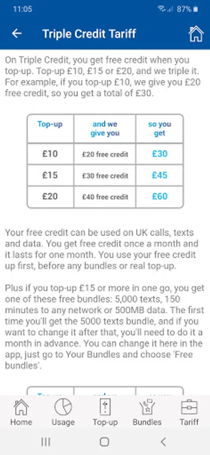 Keep an eye on your pay as you go account essentials with the free Tesco Mobile pay as you go app for Android.