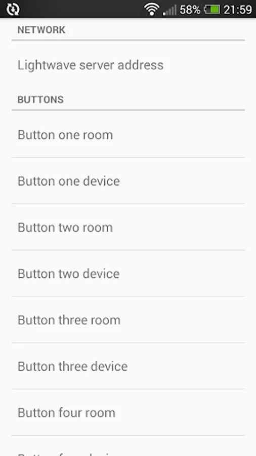 The widget currently only supports four buttons that can be defined to control different devices at installation or afterwards by launching "Lightwave Widget". The buttons by default control Room 1 and devices 1 to 4.