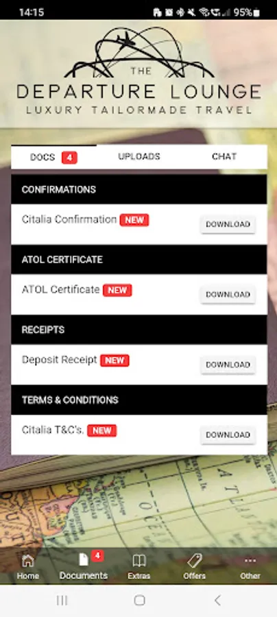 Remove the stress when travelling! After you've booked your holiday, we'll upload important travel documents and send them to you through the app: boarding passes, tickets, reservations - all available within the app. Need to send us something? Upload your own travel documents in the app and get back to packing your suitcase!