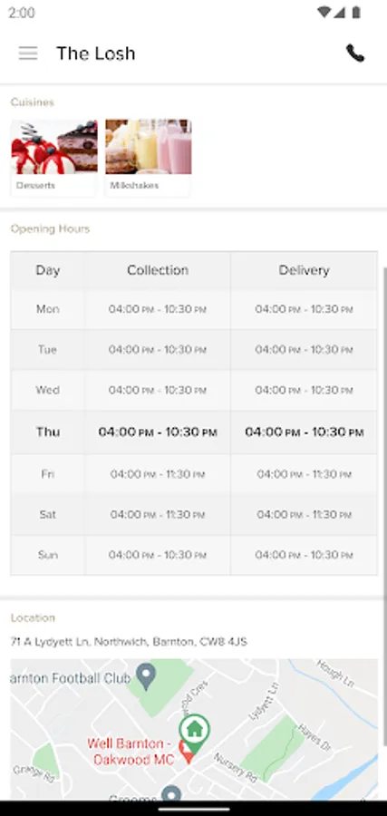 Order food online from The Losh! It's so easy to use, fast and convenient. Try our new, online app which contains our entire takeaway menu. The Losh is located in Barnton, and is proud to serve the surrounding areas.