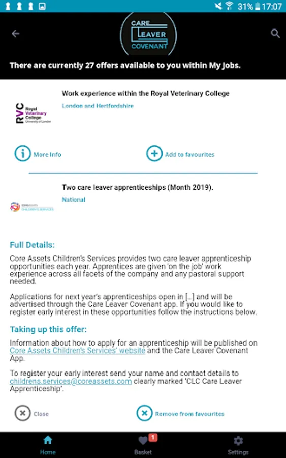 The Care Leaver Covenant App. Connecting Care Leaver's with special offers from a range of Providers Nationwide.