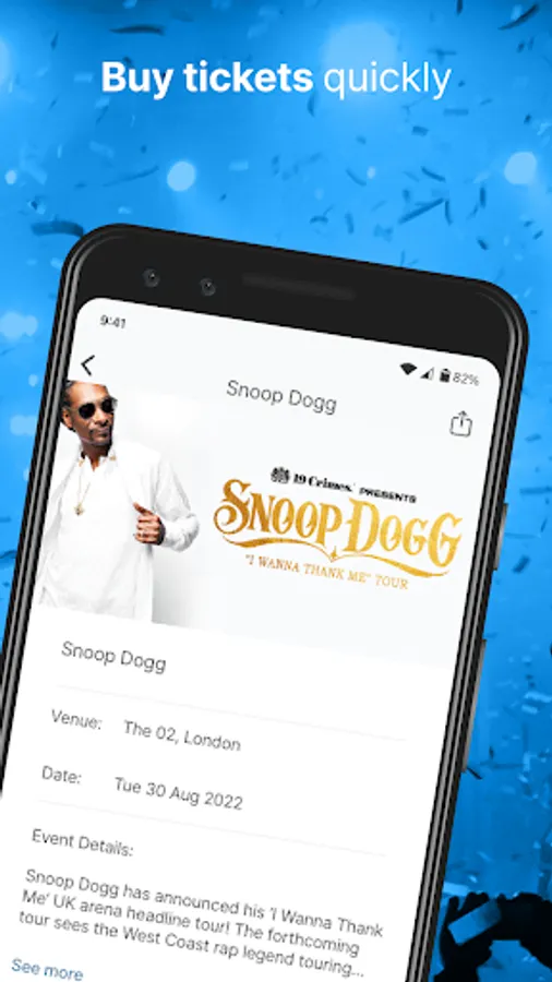 The fastest way to buy tickets for your next live experience, with easy access to view and share mobile tickets with friends.