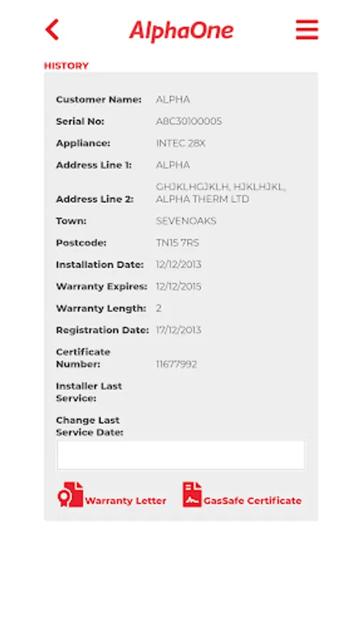 A utility to allow engineers working for Alpha Heating Innovation to register installations quickly and easily.