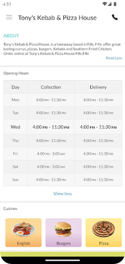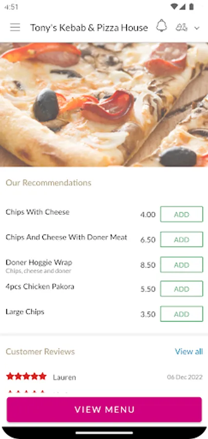 Thank you for visiting Tony's Kebab & Pizza House in Kirkcaldy. We hope you enjoy our online ordering app and your food.