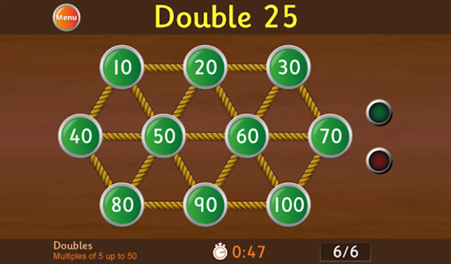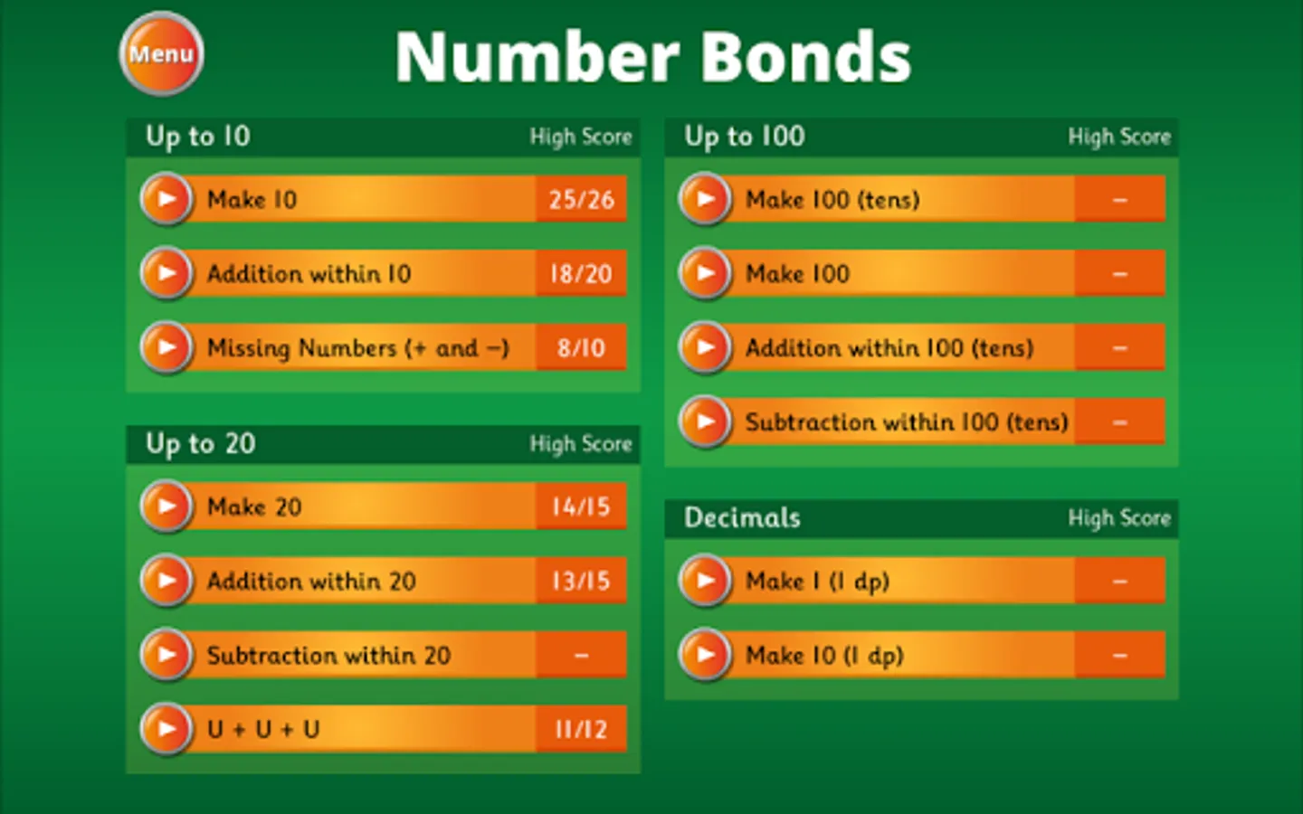 The app is aimed at 5-11 year olds. There are 166 different game modes of varying difficulty so it is useful throughout grades K-5. Answer as many questions as possible in minute-long games, or you can now practice without the pressure of a countdown timer - a feature which is new for 2019. Questions are randomly generated which means it is very replayable. The game has been carefully designed for children, with large, widely spaced buttons. We recommend that young children play on a tablet.