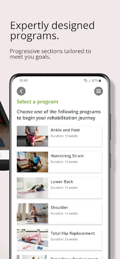The app also offers progressive rehab phases that are tailored to meet your goals, making it easier to recover from a sports injury or surgery.