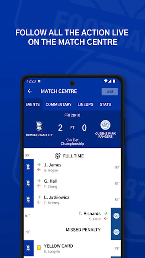 Follow live match coverage of every Blues game with the new-look match centre. Get live text commentary, live-scores, stats, player line-ups and league tables.