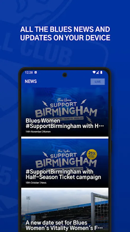 Instant access to bcfc.com, online Blues Store and ticketing site, plus tailored push notifications straight to your device.